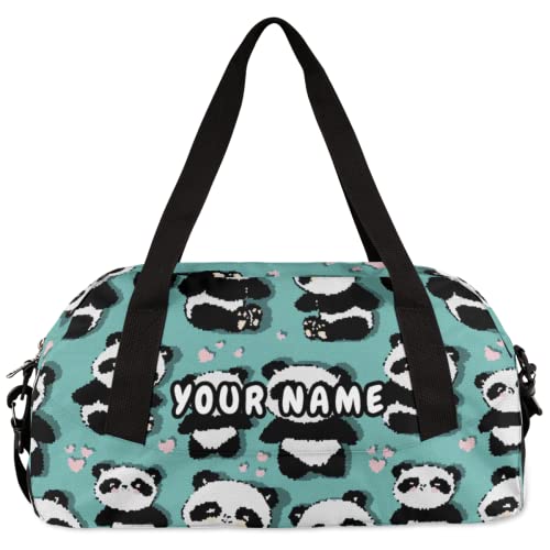 HOT ! Panda Heart Personalized Kids Duffel Bag for Girls Boys, Panda Debris Custom Name Dance Bag Overnight Small Duffel Bag Carry On Weekend Sports Travel Bag for School Practice Gymnastics Ballet