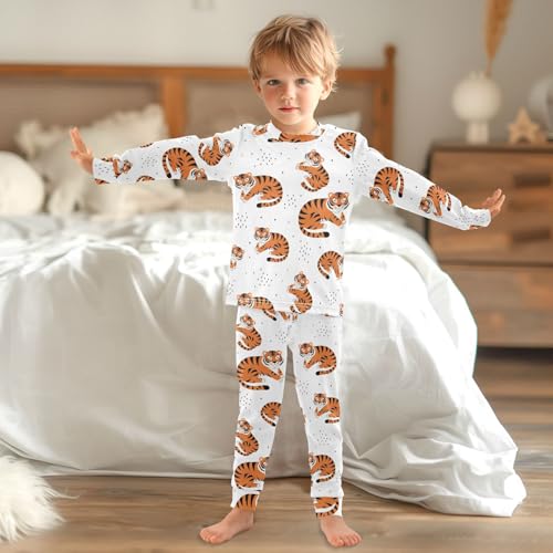 Pajama Sets Long Sleeve Cute Sleeping Tiger Pattern Soft Comfy Sleepwear 2 Piece PJS 3-8T 2