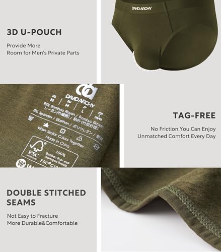 HOT ! DAVID ARCHY Men's Seamless Bamboo Rayon Briefs, Breathable Soft Underwear with No-Fly Pouch 4-Pack