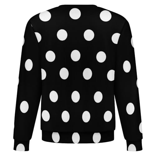 Black White Polka Dot Mens Casual Crew Neck Sweaters Long Sleeve Lightweight Pullover Sweaters 3