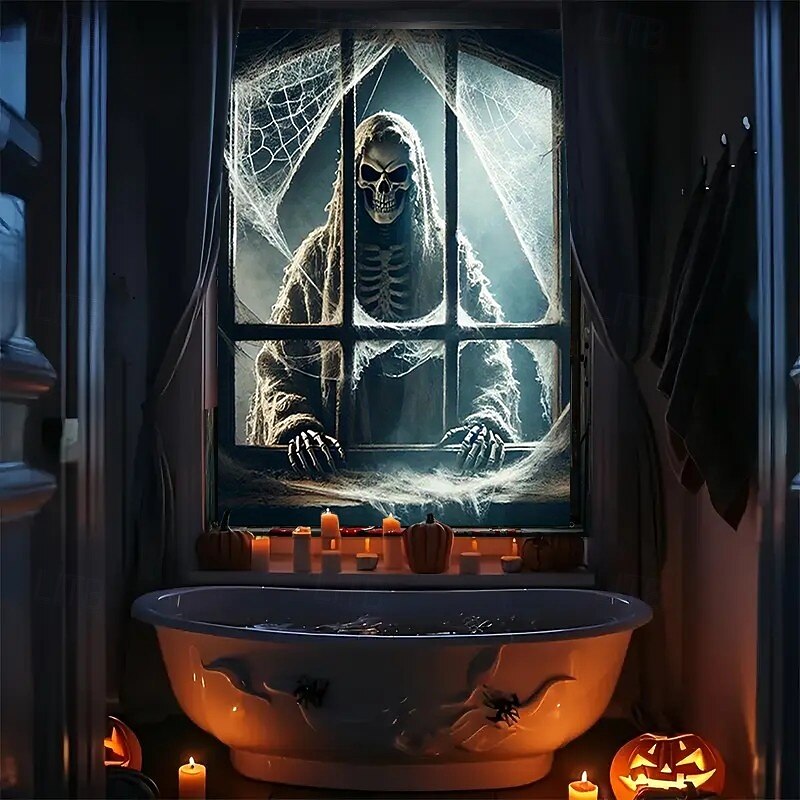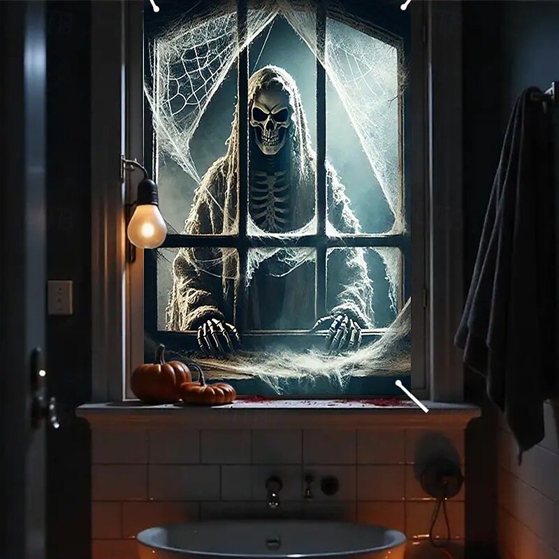 HOT ! Halloween Window Curtain Grim Reaper Peeking Through Window, Horror Door Cover, Window cover, Wall Tapestry for Spooky 2025 Halloween Decoration