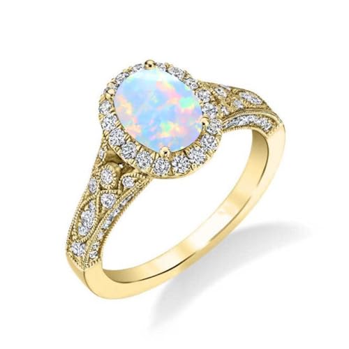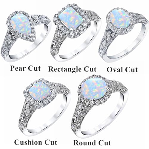 Vintage Opal Engagement Rings for Women Opal and Moissanite Rings 925 Sterling Silver 10K 14K 18K Gold October Birthstone Rings Anniversary Promise Rings for Her 7