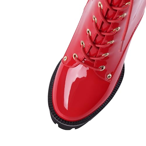 Z.Oufeier Women's Platform High Chunky Heel Combat Goth Ankle Boots Buckles Patent Leather Lace Up Block Heeled Booties 6