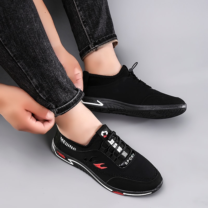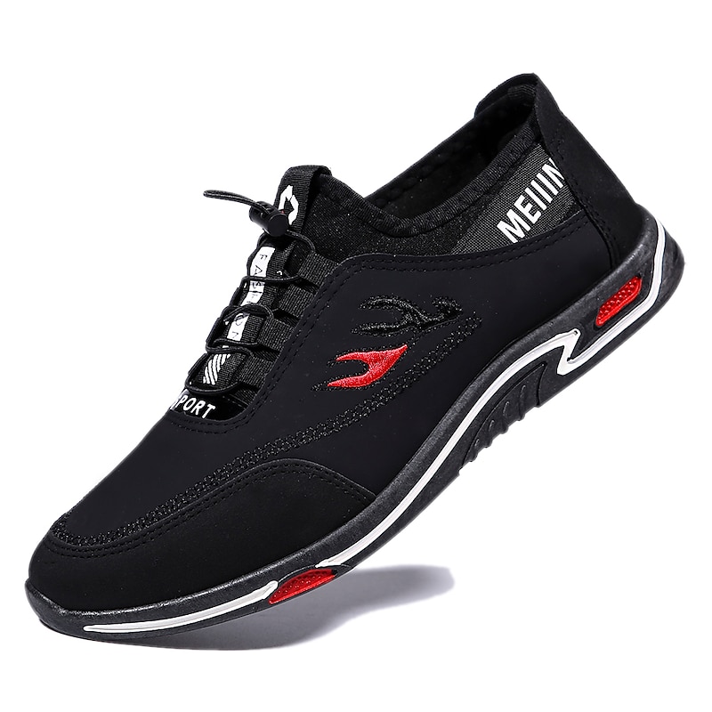 Highlights [Fabric and Materials] : Constructed with durable faux leather and a rubber outsole, these men's sporty sneakers are designed to withstand various outdoor activities. The high-quality synthetic upper ensures a lightweight and breathable experience, making them a reliable choice for summer wear. [Fit and Design] : Sporting a casual yet sporty silhouette, the sneakers feature a modern round toe design that complements a variety of styles. The quick lace system provides an easy and adjustable fit, enhancing comfort with every step. [Design Highlights] : These sneakers boast a striking color block design in blue and black, skillfully incorporating red and white details for a dynamic look. The secure fit is supported by elastic bands, and additional padding on the heel and tongue areas ensure maximum comfort during extended wear. [Occasions and Use] : Ideal for daily wear, outdoor adventures, and casual events, these sneakers combine style and durability to suit diverse activities. Whether you're hiking or enjoying a casual day out, these shoes offer the perfect balance of flair and functionality. [Size Guide] : Available in sizes 39 to 44, these sneakers are designed to accommodate a variety of foot sizes, with a recommendation to select one size larger for a more comfortable fit.