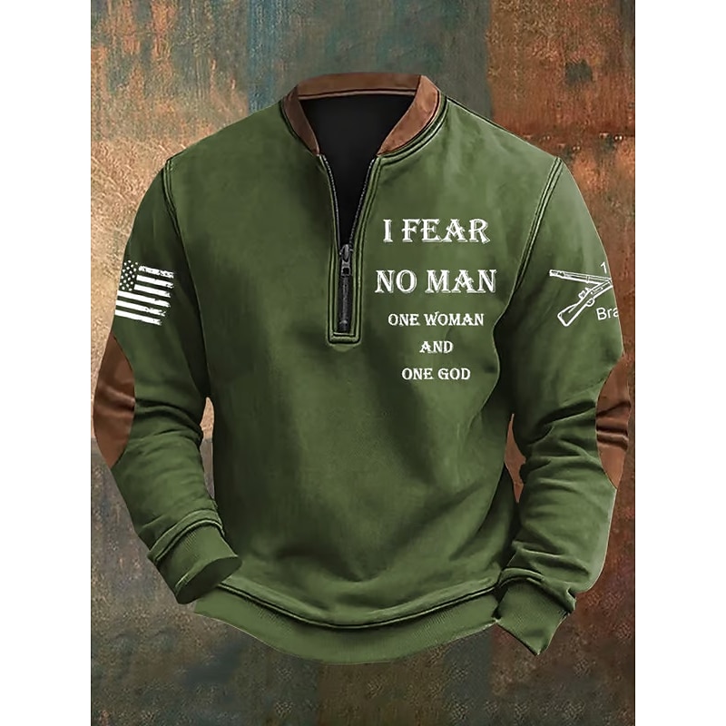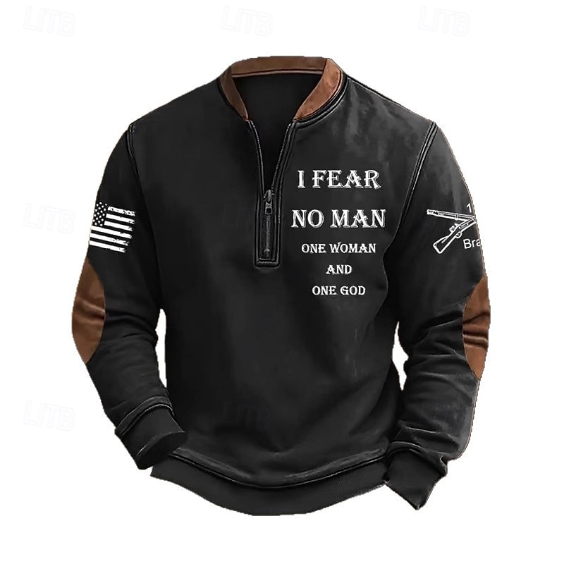 Men's Quarter Zip Sweatshirt Black White Wine Navy Blue Green Half Zip Letter American Flag Front Pocket Quarter Zip Daily Holiday Going out Polyester Vintage Retro Casual Fall Winter Clothing Apparel 1