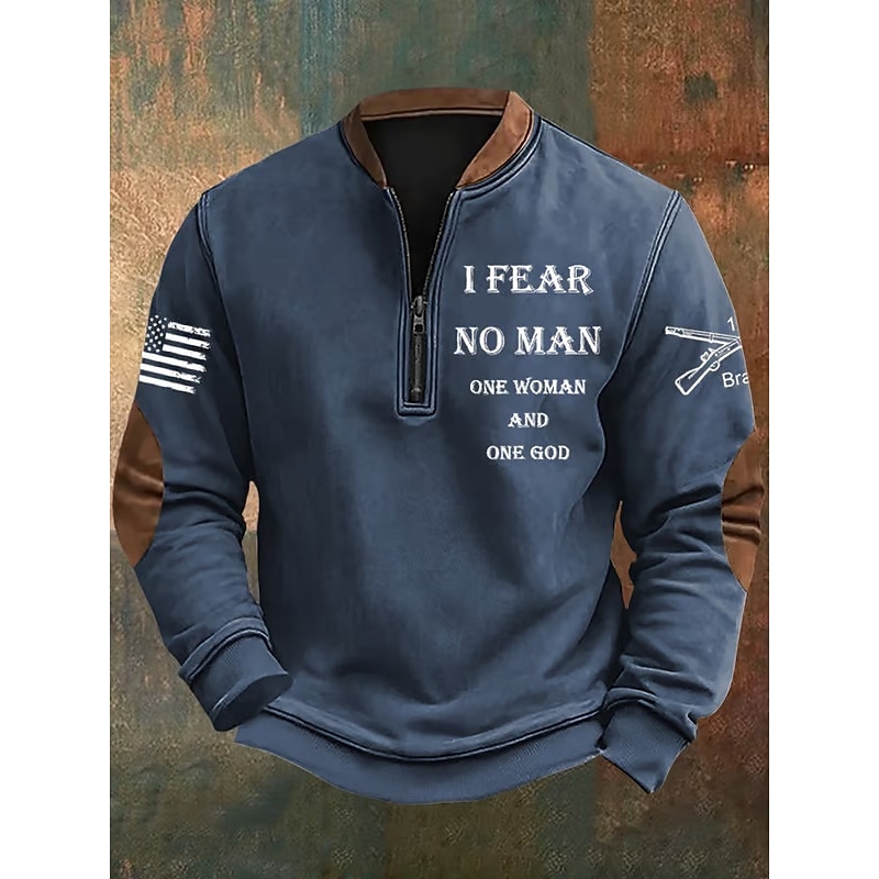 Men's Quarter Zip Sweatshirt Black White Wine Navy Blue Green Half Zip Letter American Flag Front Pocket Quarter Zip Daily Holiday Going out Polyester Vintage Retro Casual Fall Winter Clothing Apparel 10