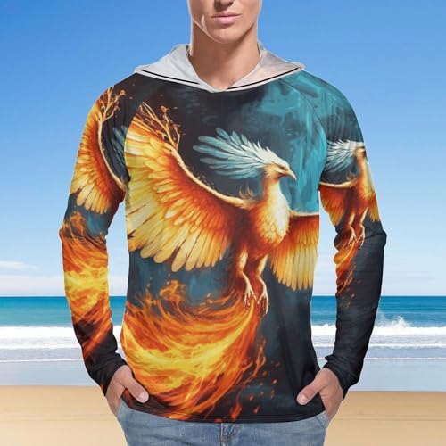 Men's Sun Shirts UPF 50+ Rash Guard Long Sleeve Sun Protection Hoodie Beautiful Phoenix Lightweight Shirt L White 7
