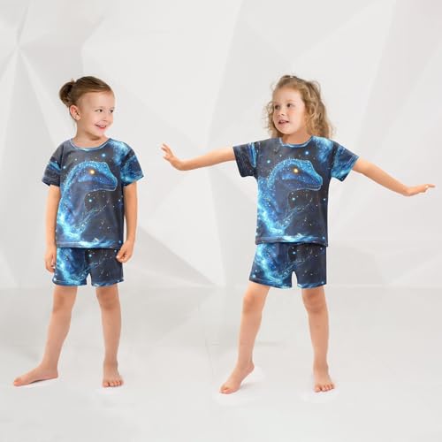 ALAZA Blue Starry Dragon Pajamas Set Short Sleeve Cotton Sleepwear Summer Pjs 2 Piece 5-14Y 1