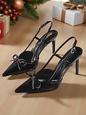 More information about Women's Green and Red Slingback Stiletto Heels - Pointed Toe Dress Shoes with Bow Detail for Cocktail Parties and Holiday Celebrations