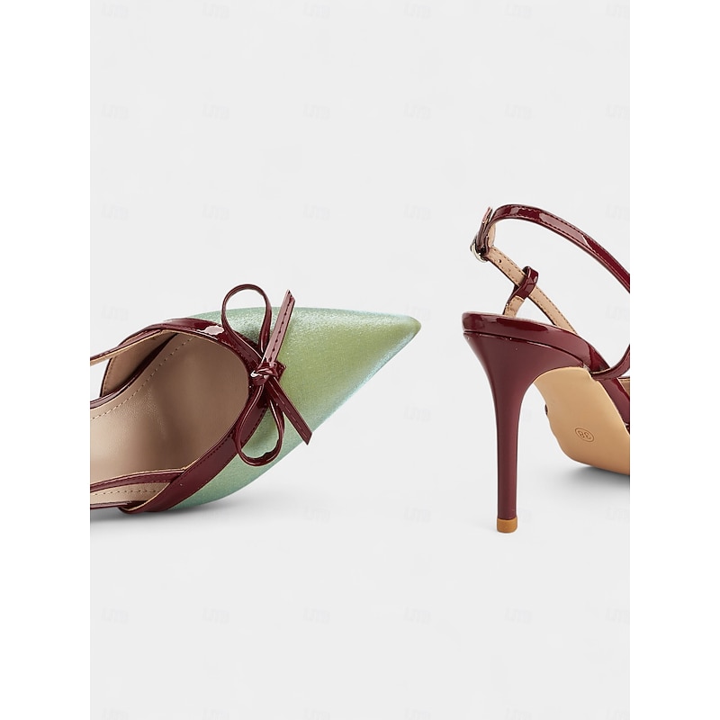 Women's Green and Red Slingback Stiletto Heels - Pointed Toe Dress Shoes with Bow Detail for Cocktail Parties and Holiday Celebrations 17