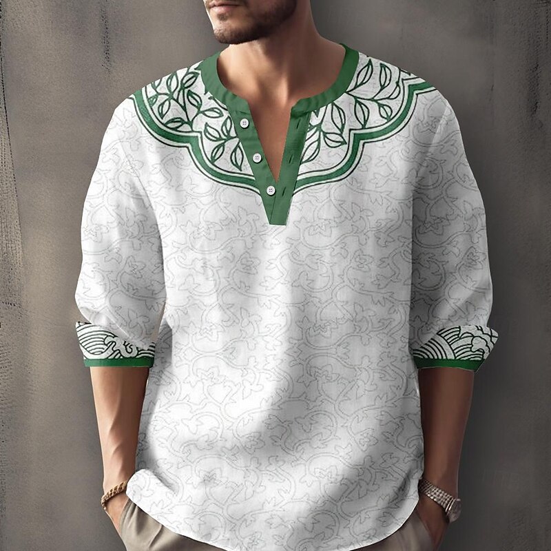 Men's Pattern Ethnic Shirt Button Up Shirt Long Sleeve Casual Tribal Daily Holiday Summer Spring Fall Stand Collar Print Red Blue Green 9