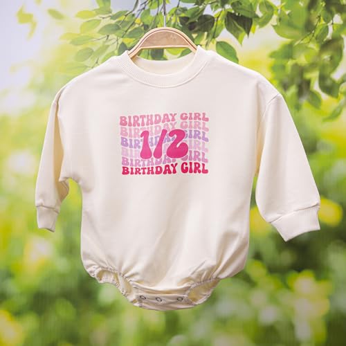 2PCS Baby Girl Halfway to One Rompers 1/2 Way to One Birthday Bodysuit Outfit, Adorable Long and Short Sleeve Set