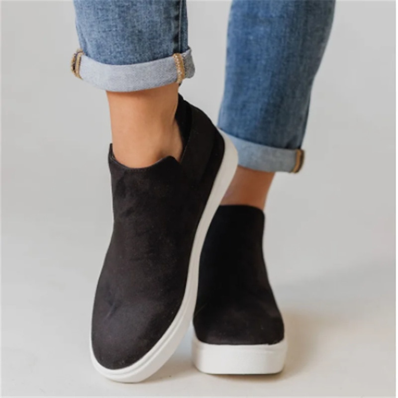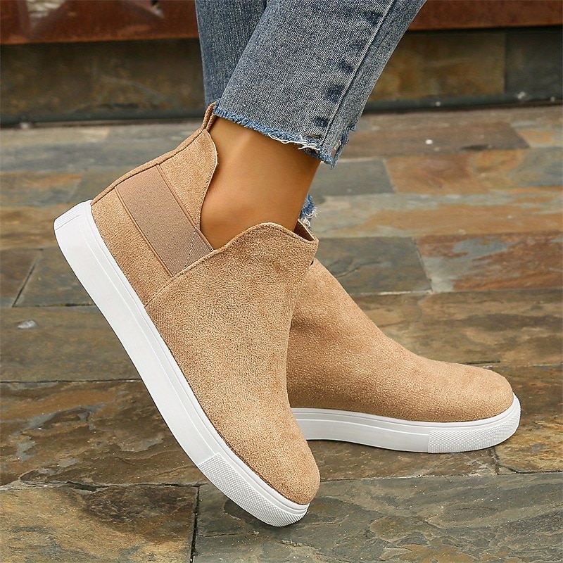 Highlights [Fabric] : Crafted from luxurious suede material, these women's slip-on sneakers feature a soft, breathable upper that ensures comfort and flexibility throughout the day. The rich tan color adds a touch of elegance to the sporty design. [Shape] : These sneakers boast a modern slip-on silhouette with a rounded toe, offering a sleek yet casual look ideal for everyday wear. The versatile design allows for easy pairing with various outfits, from jeans to leggings. [Design Highlights] : The sneakers are designed with elastic side panels for convenient on-and-off wear, ensuring a snug fit while adding a subtle sporty flair. The thick white rubber sole provides exceptional traction and durability, making these shoes suitable for diverse terrains. [Occasions] : Perfect for daily activities, these sneakers transition seamlessly through the seasons, making them a versatile addition to your wardrobe. Whether running errands or enjoying a casual outing, these shoes provide the ideal blend of comfort and style for any casual occasion. [Size Range] : Available in a variety of sizes, including US5.5 to US10.5, these sneakers cater to a broad range of fits, ensuring an option for everyone seeking both style and comfort.