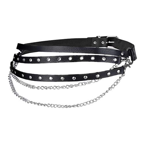 Eigso Punk Leather Belts for Women O-Rings Chains Goth Rock Garters Strap for Woman Waist Chain Belt Adjustable 3