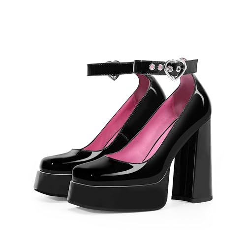 • Stylish Design: These shoes have a 1.38-inch high platform. These platform pumps feature a square toe and a chic heart buckle on the ankle strap, adding a touch of glamour to your outfit.