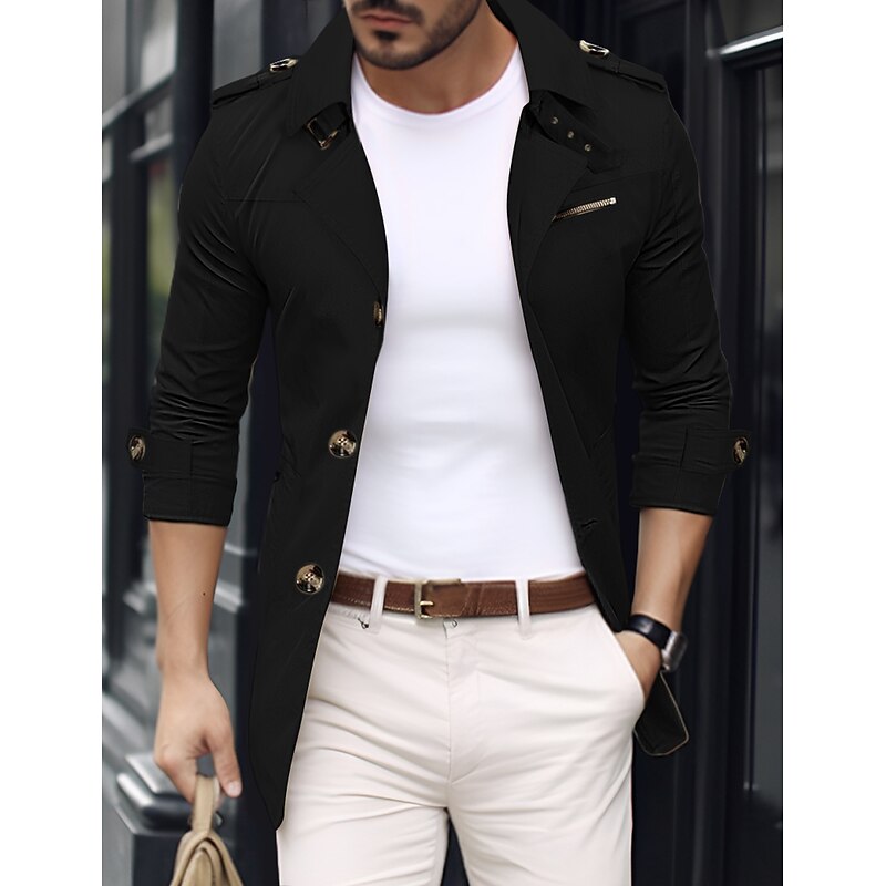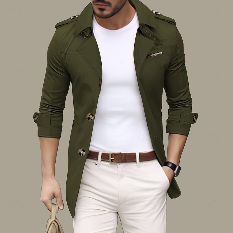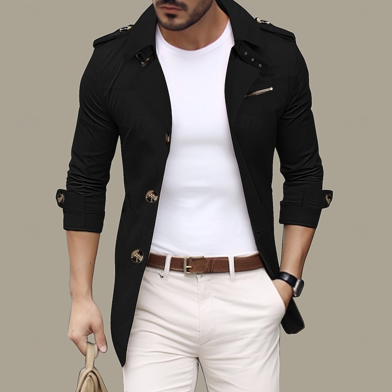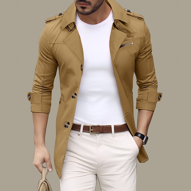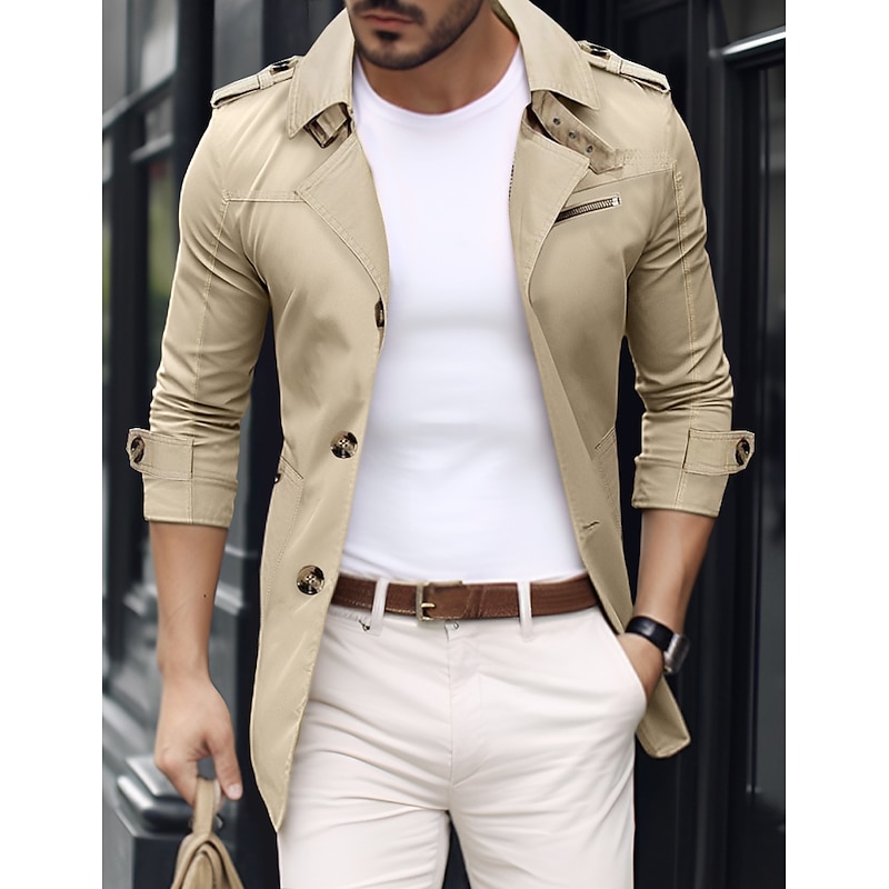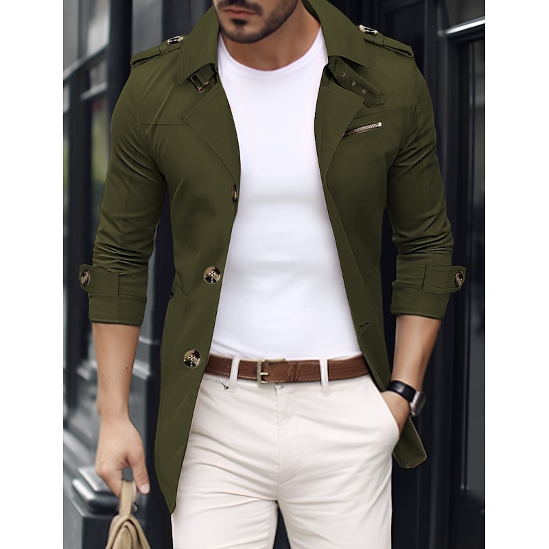 More information about Men's Transition Jacket Trench Coat Going out Spring & Fall Polyester Windbreaker Outerwear Clothing Apparel Streetwear Plain Turndown Single Breasted