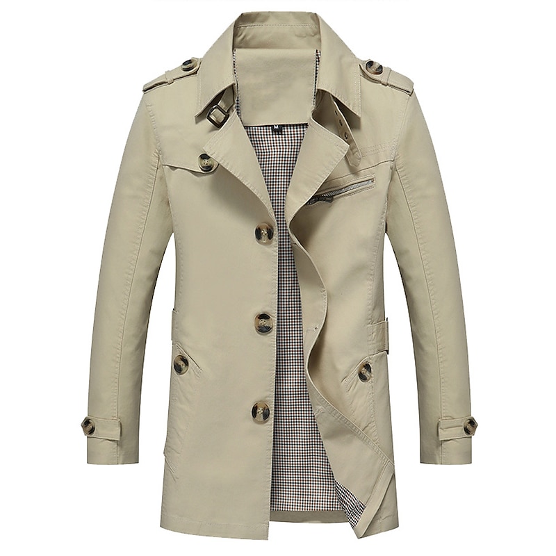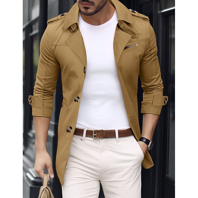 HOT ! Men's Transition Jacket Trench Coat Going out Spring & Fall Polyester Windbreaker Outerwear Clothing Apparel Streetwear Plain Turndown Single Breasted