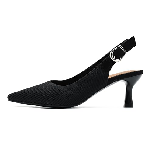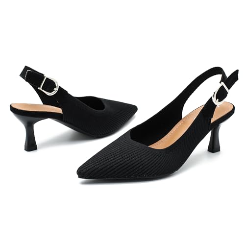 More information about Women's Slingback Kitten Heels Pointed Toe Knit Pumps Slip On Dress Shoes