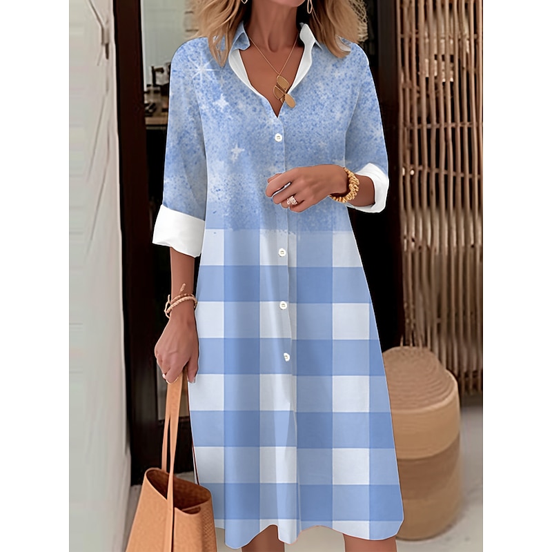 More information about Women's Midi Dress Shirt Dress Casual Dress Midi Dress Outdoor Office Daily Fashion Modern Shirt Collar Button Pocket Long Sleeve Fall Winter Loose Fit Ombre Plaid