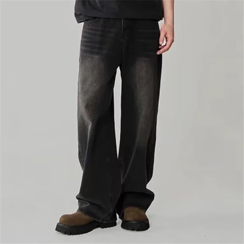 HOT ! Mens Denim Pants High Waist Wide Leg Vintage Classic Loose Casual Denim Pants