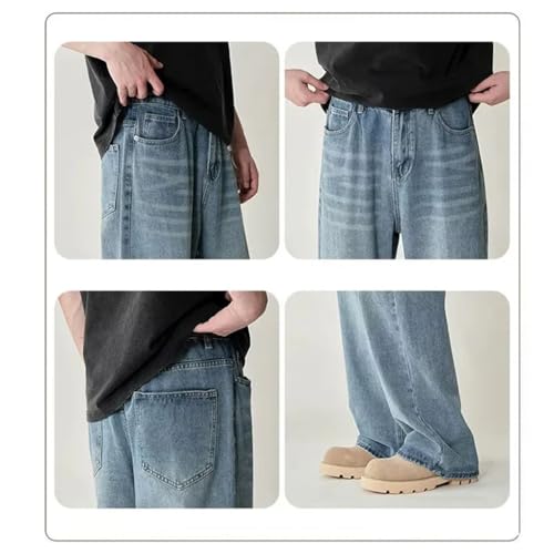 Mens Denim Pants High Waist Wide Leg Vintage Classic Loose Casual Denim Pants 4