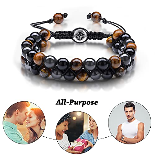 • What You Get: 2 pieces bracelets are included in a package, each beaded wristband contains hematite, black obsidian and tiger eye stones, which will bring good luck to you, the quantity is enough to share with your friends