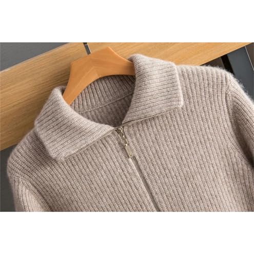 Kelsiop Men's Winter Zipper Lapel Thick Needle Plus Size Cashmere Sweater 7