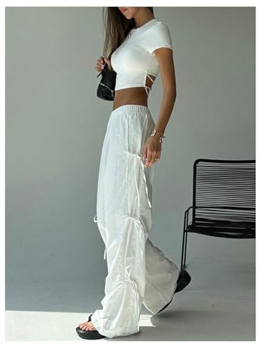 WDIRARA Women's Bowknot Wide Leg Pants Elastic High Waisted Y2K Loose Palazzo Pants 6