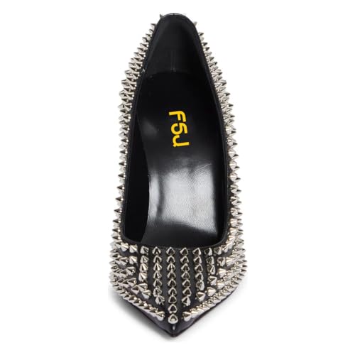 FSJ Women Classic Pumps Closed Pointed Toe Slim High Heel Fashion Studded Rivets Slip On Cocktail Party Prom Sexy Dress Shoes Size 4-16 US 5