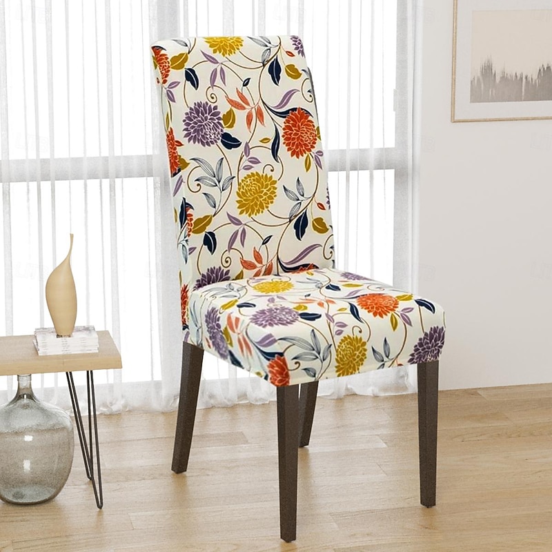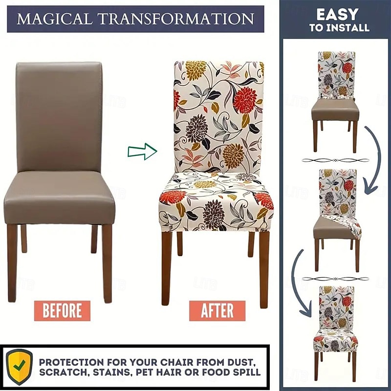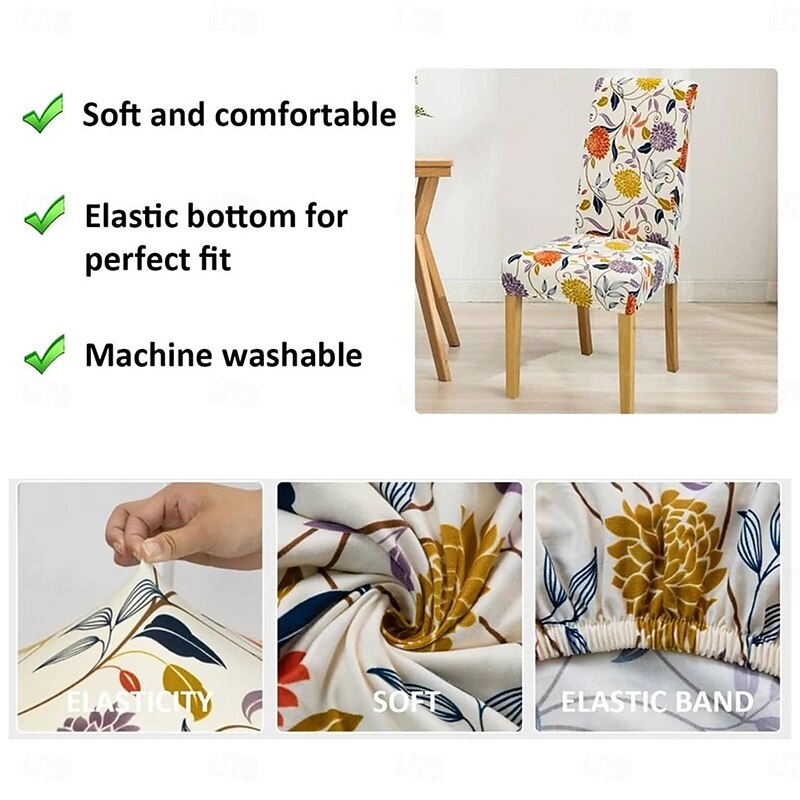 HOT ! Water Resistant Stretch Spandex Dining Chair Cover 1/4/6 Pcs Set, Floral Pattern Stretch Chair Protector Cover Seat Slipcover with Elastic Band