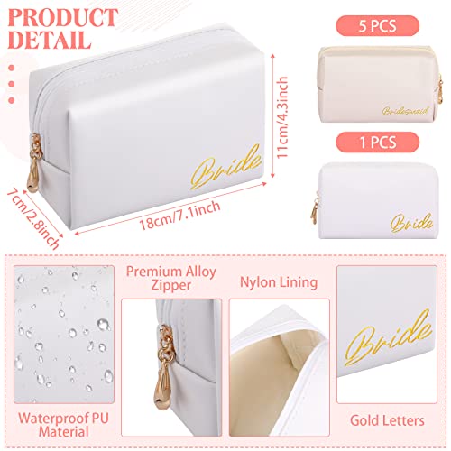 • Package Contains: there are 6 pieces of bride and bridesmaid cosmetic bags, including 1 cosmetic bag in white with letters [bride] and 5 cosmetic bags in ivory white with letters [bridesmaid], rich quantity combination can meet your use needs for weddings