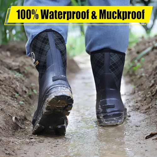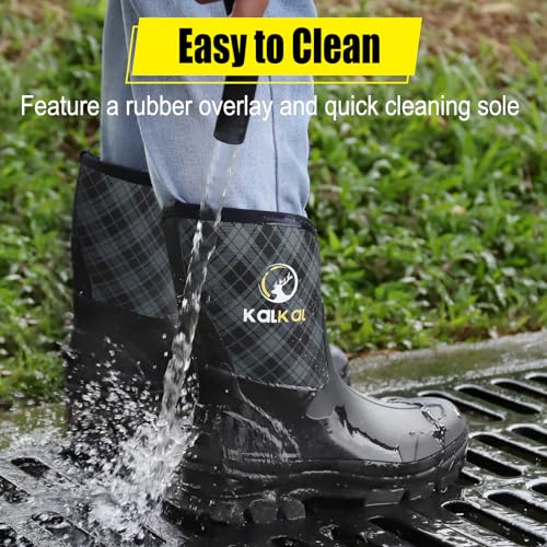 Kalkal Rubber Boots for Men, 6mm Neoprene Insulated Rain Boots with Steel Shank, Waterproof Mid Calf Rubber Work Boots For Mud Gardening Farming Fishing Hunting Working, Size 7-14 5