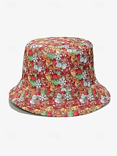 More information about Reversible Christmas Bucket Hat - Santa and Reindeer Design, Red Plaid Holiday Theme, Unisex Festive Hat for Winter and Holiday Parties