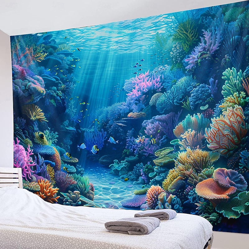 HOT ! Undersea Landscape Hanging Tapestry Wall Art Large Tapestry Mural Decor Photograph Backdrop Blanket Curtain Home Bedroom Living Room Decoration