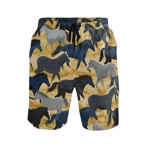 More information about Men's Swim Trunks Quick Dry Swimming Shorts with Pocket Horses Running on Golden Background Swimsuit Trunks