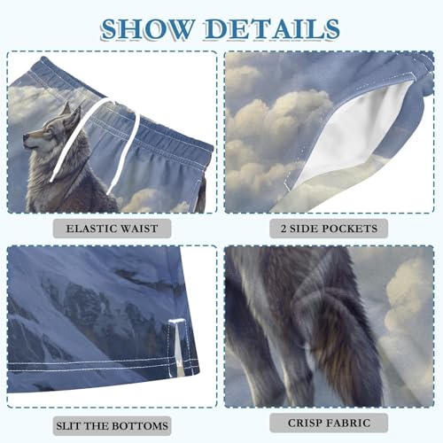 HOT ! DOMIKING Wolf Snowy Mountain Peak Kids Shorts Pull-on Boys Shorts with Elastic Waist Casual Athletic Pants for Summer Outdoor