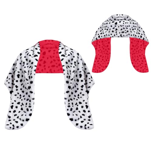 Women Dalmatian Scarf Faux Dalmation Stole Black White Coat Fancy Dress Costume Accessories 4