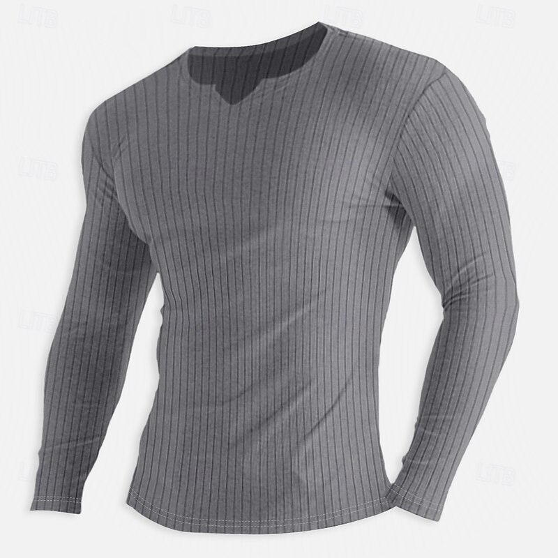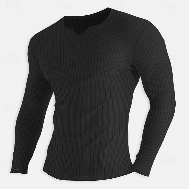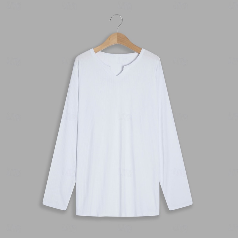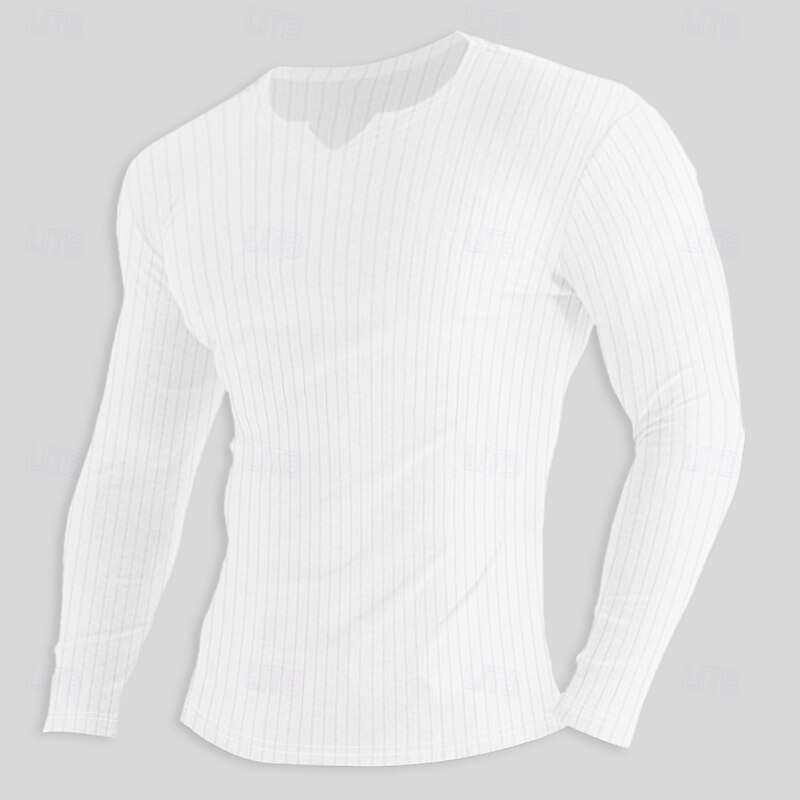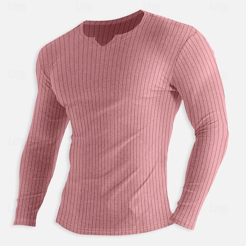: Crafted from a soft, ribbed knit cotton fabric, this men's long-sleeve t-shirt provides comfort with a micro-elastic texture, ensuring both flexibility and style. Available in a range of colors including Light Blue, White, Black, Pink, Khaki, and Grey.
