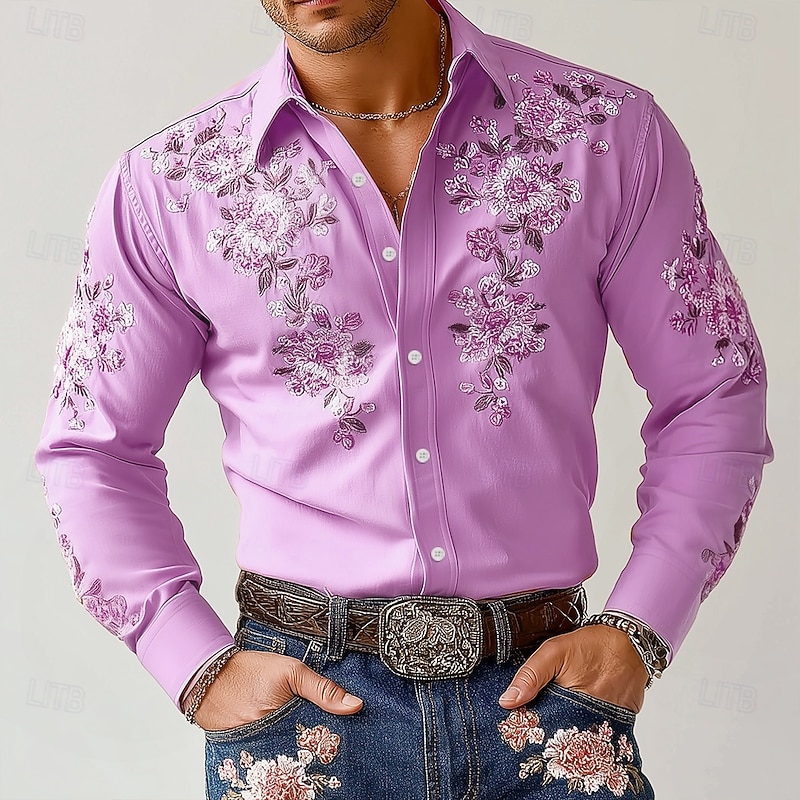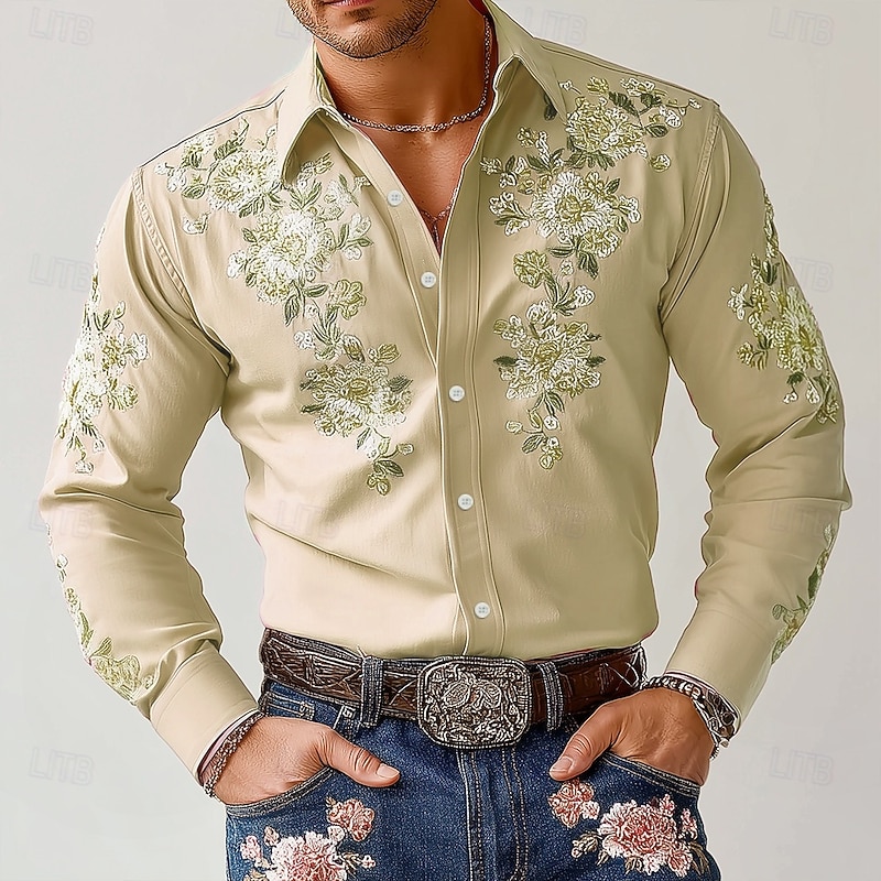 $25.99 - Men's Floral Print Flowers Shirt Western Shirt Cowboy Shirt Long Sleeve Vintage Retro Outdoor Vacation Spring Fall Turndown 3D Print Linen Like Shirt Pink Blue Purple Green Khaki 2025. Shop for cheap Men's Western Shirts online? Buy at lightinthebox.com on sale today!