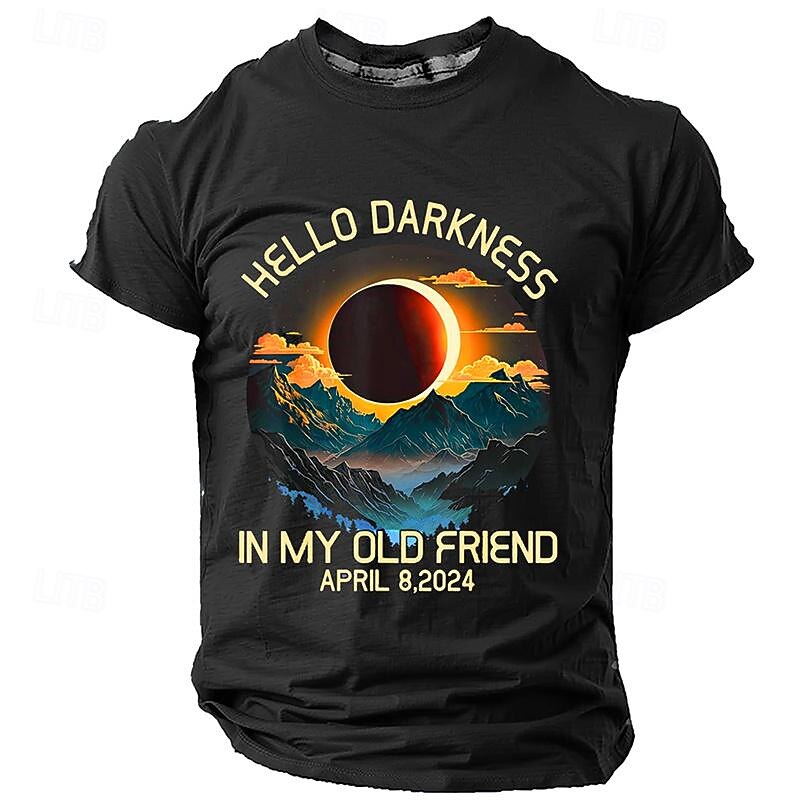 HOT ! April 8, 2024 Total Solar Eclipse Men's Graphic T-Shirt - Hello Darkness My Old Friend Tee