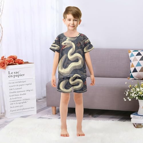 Pajama Sets Short Sleeve Retro White Snake Soft Cotton Summer Sleepwear 2 Piece PJS Size 5-14T 5