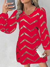 More information about Women's Mini Dress Casual Dress Fashion Modern Puff Sleeve Daily Weekend Regular Fit Graphic Long Sleeve V Neck Black Red Blue Green Spring Fall