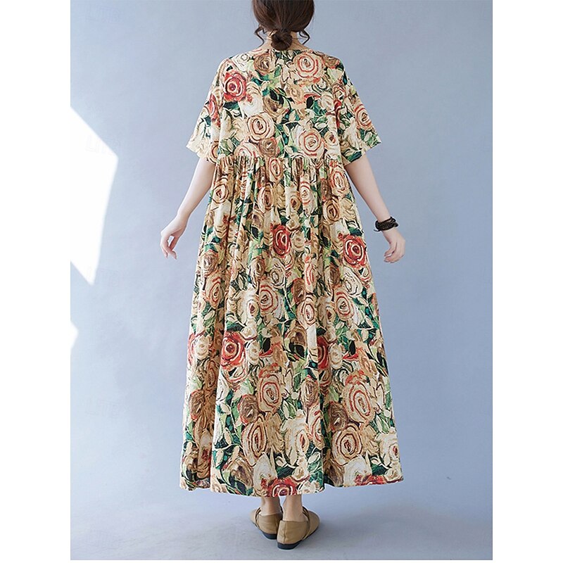 Women's Maxi Dress Cotton Linen Dresses Vintage Dress Swing Dress Cotton Maxi Dress Basic Casual Vacation Daily Regular Fit Floral Short Sleeve Crew Neck Yellow Summer 9