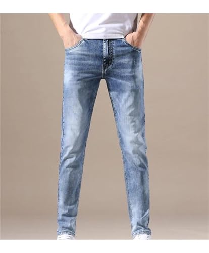 HOT ! Mnjyihy Men's Straight Leg Denim Pants Light Blue Distressed Button Fly Stretch Slim Fit Pocket Skinny Jeans