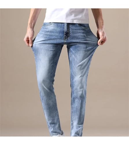 Mnjyihy Men's Straight Leg Denim Pants Light Blue Distressed Button Fly Stretch Slim Fit Pocket Skinny Jeans 6