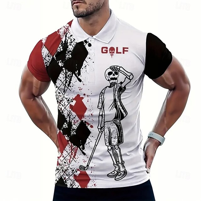 More information about Men's Skull Sports Polo Shirts Short Sleeve Polo Shirts Collared Shirts Casual Outdoor Athleisure Daily Wear 3D Print Summer White