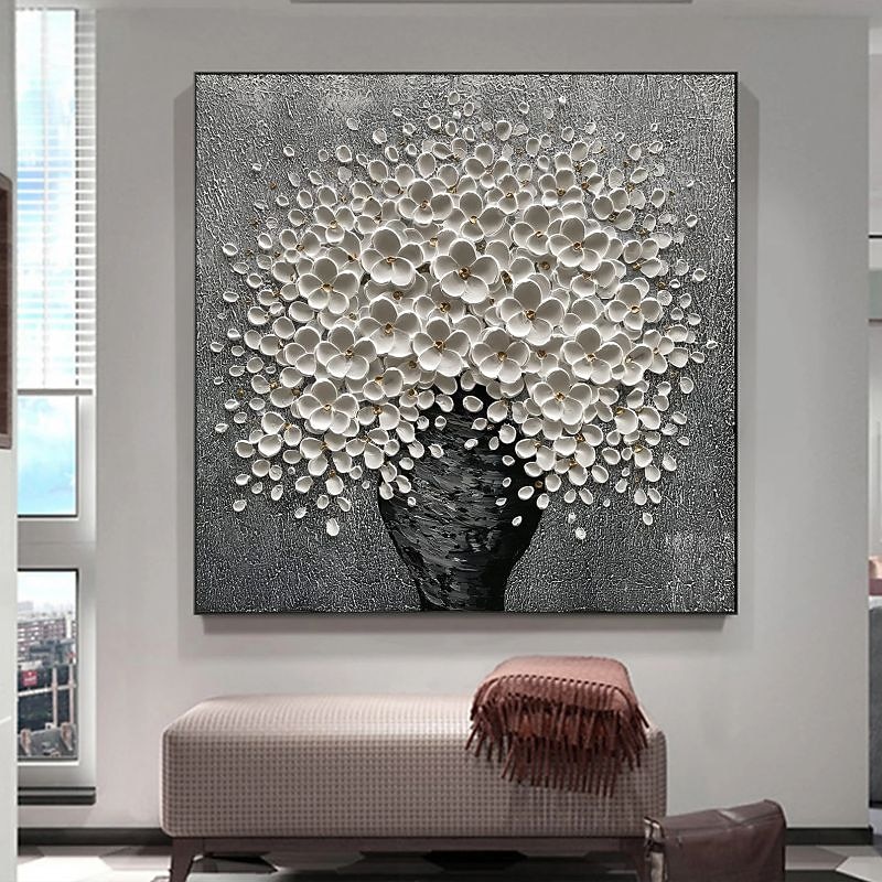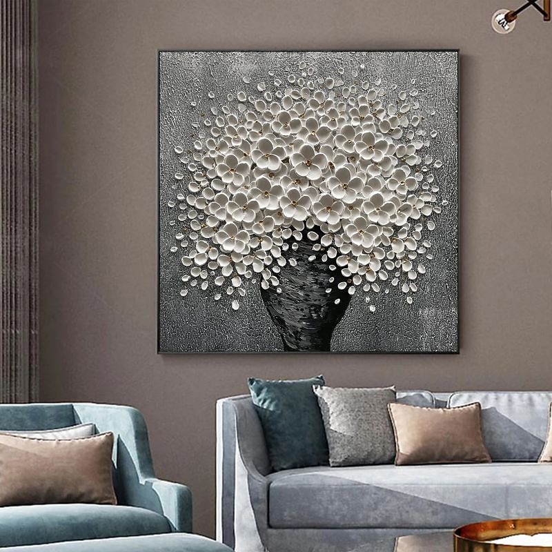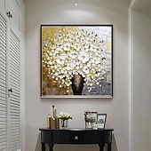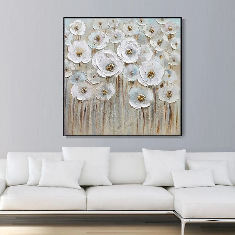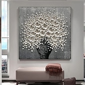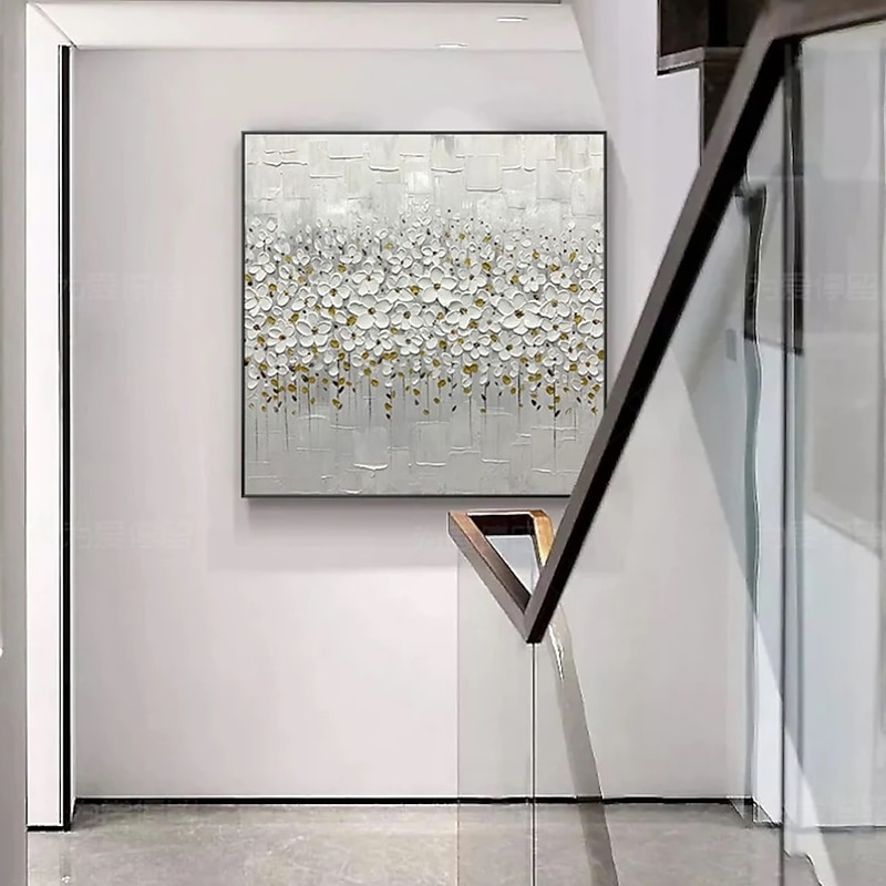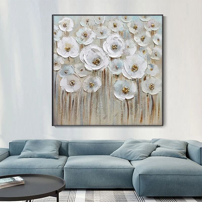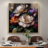More information about Manual Handmade Oil Painting Hand Painted Square Abstract Floral / Botanical Modern Realism Rolled Canvas (No Frame)