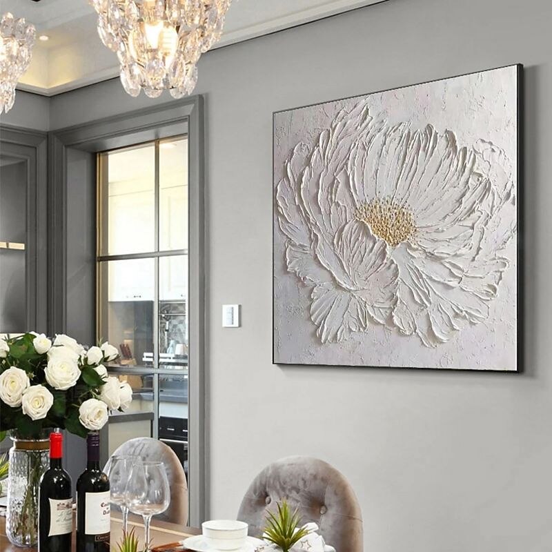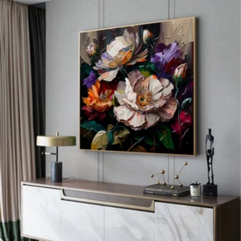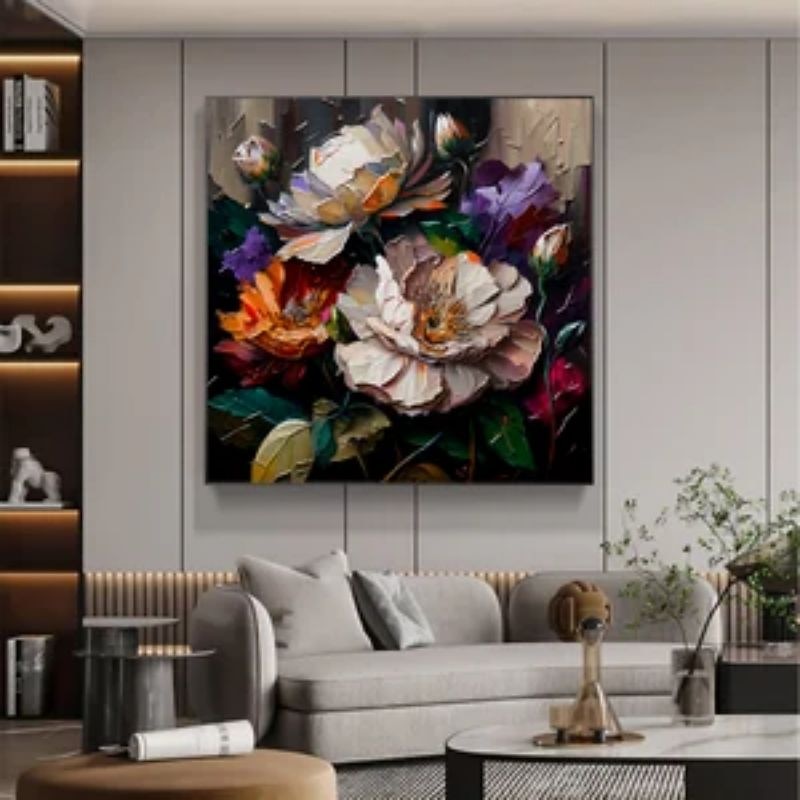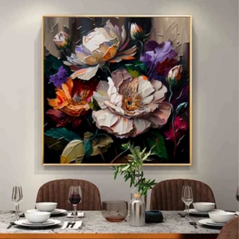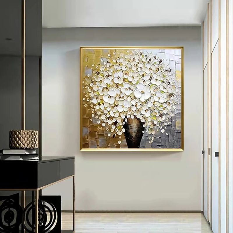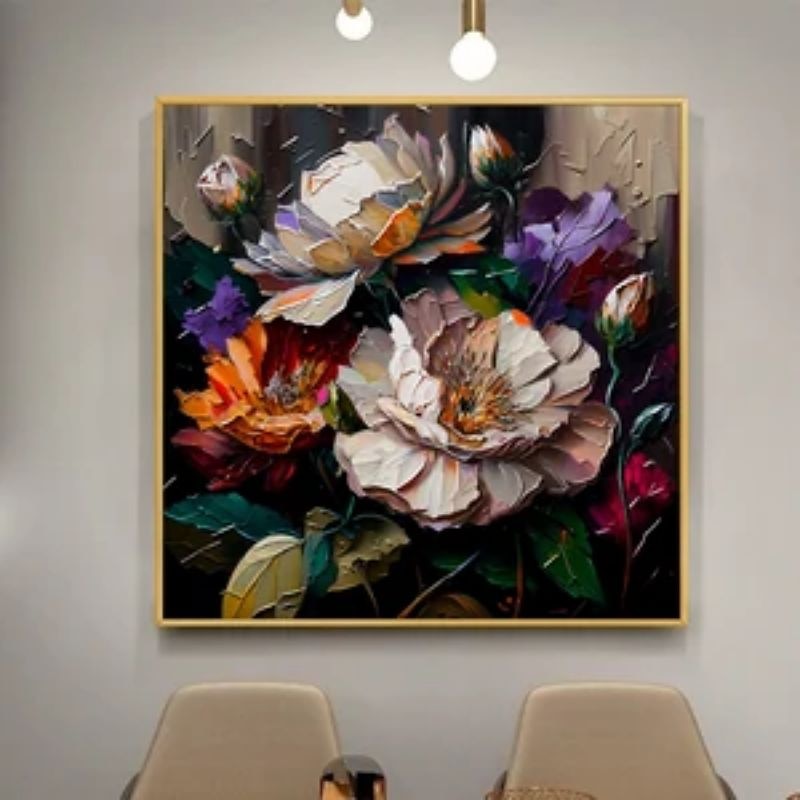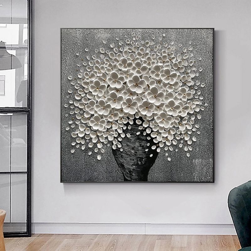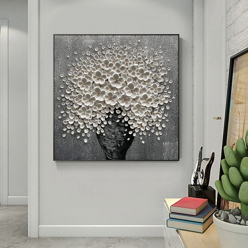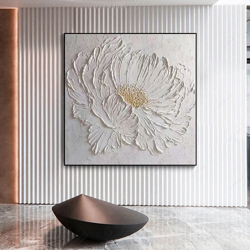 HOT ! Manual Handmade Oil Painting Hand Painted Square Abstract Floral / Botanical Modern Realism Rolled Canvas (No Frame)