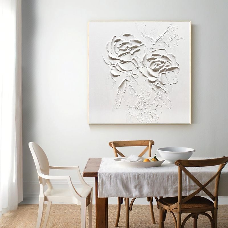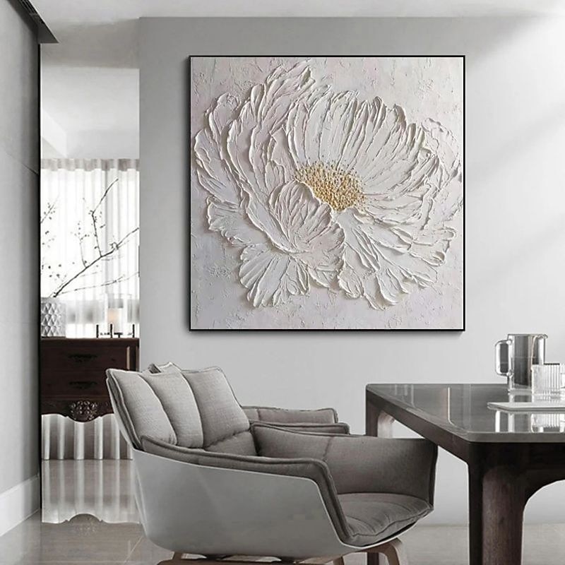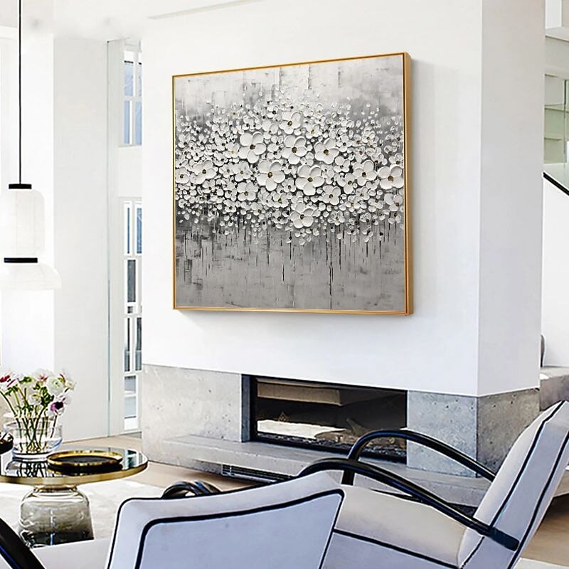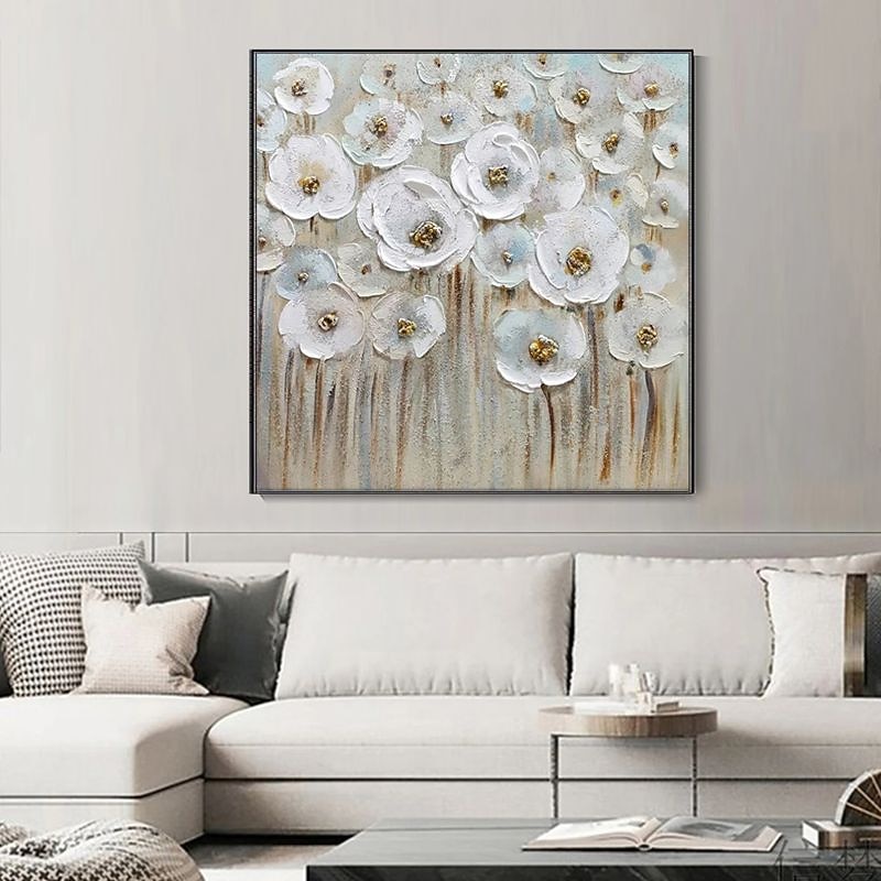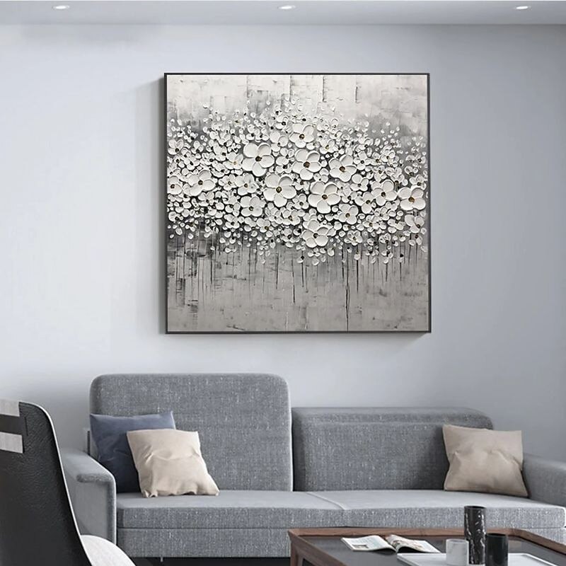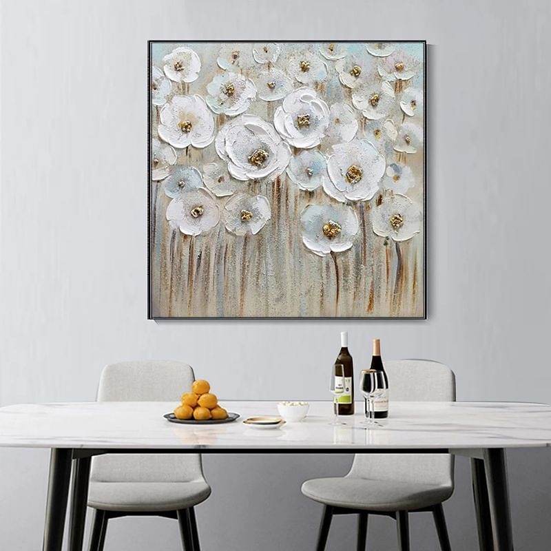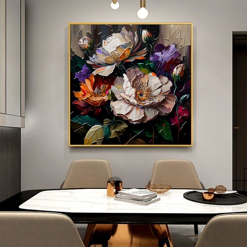 Manual Handmade Oil Painting Hand Painted Square Abstract Floral / Botanical Modern Realism Rolled Canvas (No Frame) 7