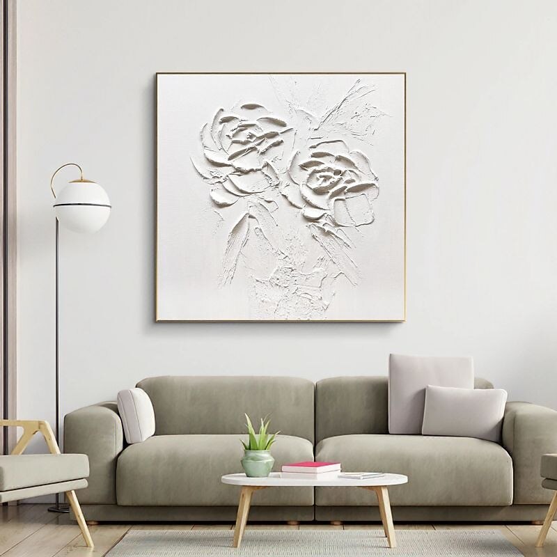 Manual Handmade Oil Painting Hand Painted Square Abstract Floral / Botanical Modern Realism Rolled Canvas (No Frame) 11